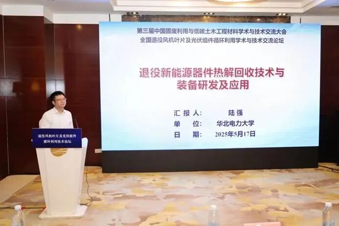 5月16至18日,第三届中国固废利用与低碳土木工程材料学术与技术交流大会同期专题会议“全国退役风机叶片及光伏组件循环利用学术与技术交流论坛”在合肥圆满召开。本次论坛座无虚席、内容扎实,汇聚了新能源循环利用领域的顶尖力量,为推动行业高质量发展搭建了高效务实的交流合作平台,取得了丰硕成果。